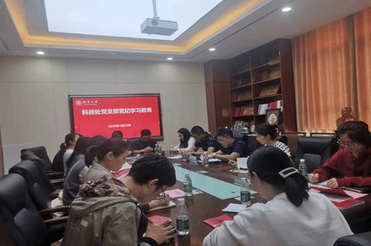 会议强调,开展好党纪学习教育是当前重大政治任务,对管党治党、办学治校至关重要。科技处党支部全体党员要提高政治站位,深刻认识党纪学习教育的重大意义,切实增强开展党纪学习教育的政治自觉、思想自觉和行动自觉;要严格对标对表,准确把握党纪学习教育的目标要求和工作安排;要扎实推进学习,推动《中国共产党纪律处分条例》入脑入心,并深化《中国共产党纪律处分条例》运用,确保党纪学习教育工作落细落实、取得实效,使党纪学习教育的每一项措施都成为促进科技管理服务工作质效提升的有效举措,以优异成绩向复校50周年献礼。